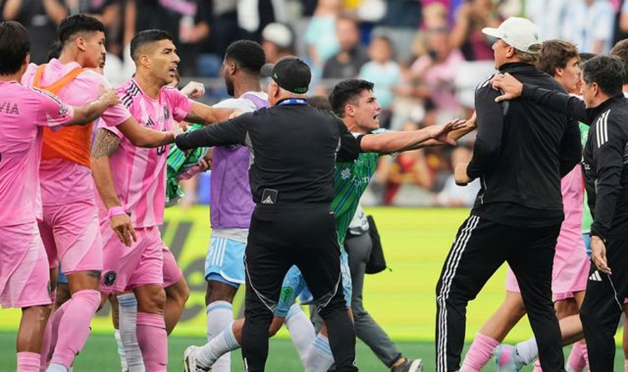 Footage showed Suarez confronting a Sounders staff member near the middle of the pitch as tensions flared between both sides after the final whistle.
