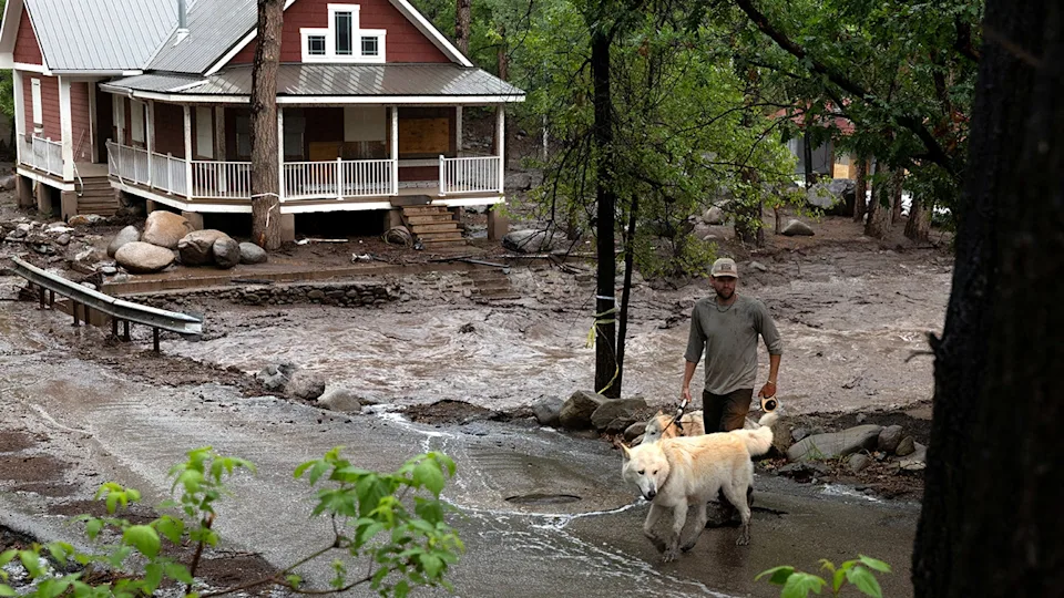 In Ruidoso on Tuesday, up to 3.5in (8.8cm) of rain fell, sending water hurtling down the surrounding mountainside and swelling the river to a record high above 20ft, before a swathe of the village was flooded.