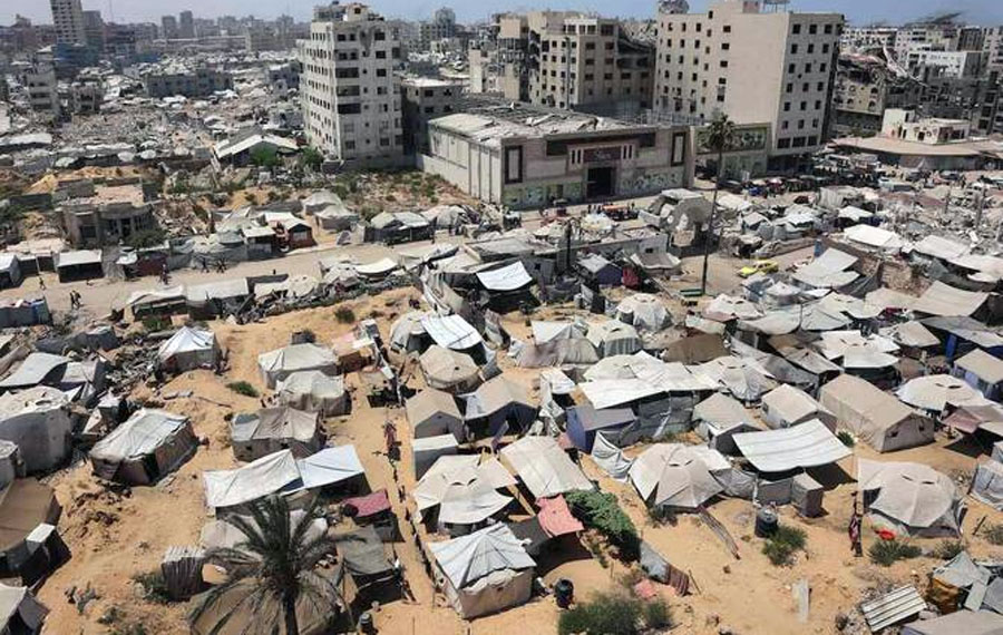 A picture taken on August 18, 2025, shows tents housing displaced Palestinians in Gaza City. (AFP)