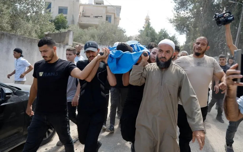 “My son fell to the ground, and then I heard the sound of a shot,” he said. “An army jeep came up and five or six soldiers pointed their weapons at me, telling me to leave. I didn’t even know my son was martyred. I started dragging him away.”