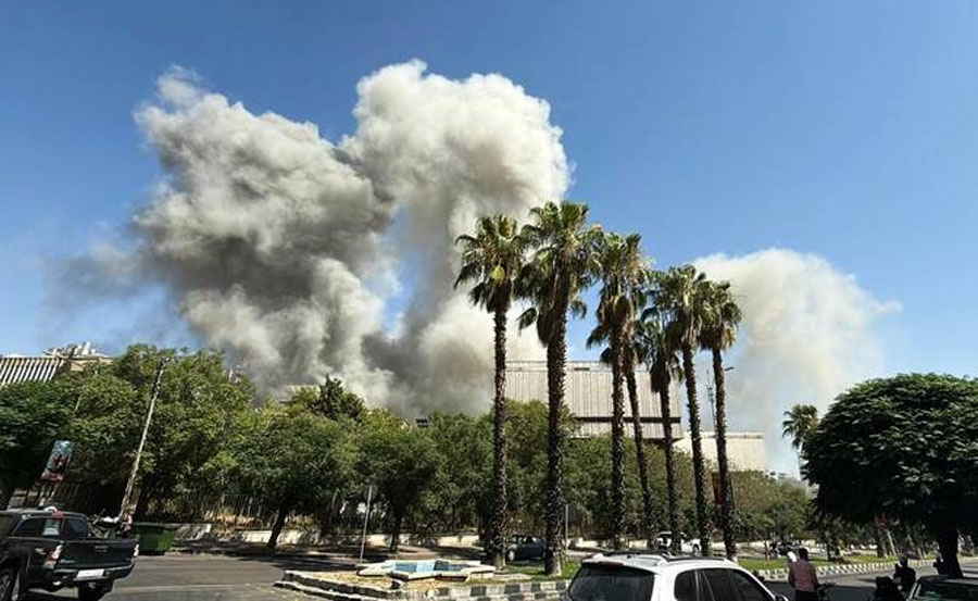 Smoke billows following Israeli strikes near the Syrian army and defence ministry headquarters in Damascus, July 16, 2025. (AFP)