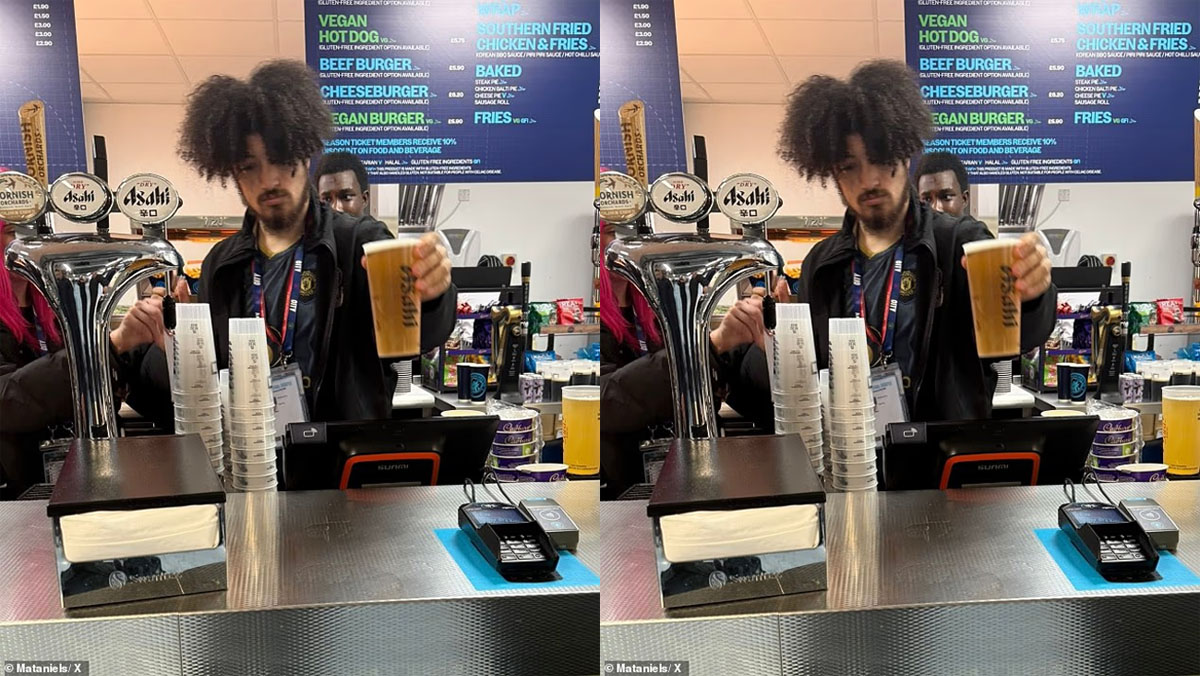 The incident came to light after a frustrated City supporter posted a photo on X (formerly Twitter), showing the staff member behind the bar in a dark United away jersey from the 2018/19 season.