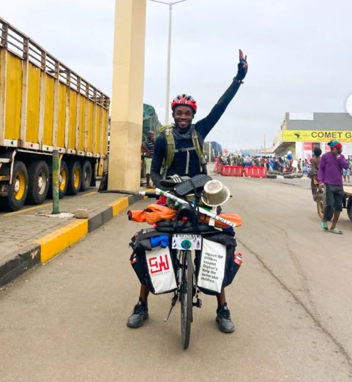 The Benue-born cyclist began his journey on July 1, pedaling through Benin Republic, Togo, and now Ghana—covering the three West African countries in just 10 days.